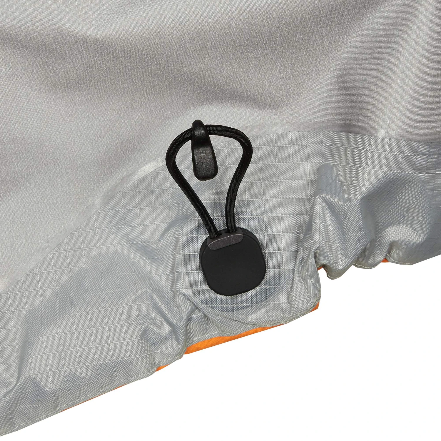 - Schnürzug im Saum, der durch eine spezielle Konstruktion nicht unter den Klettergurt rutscht