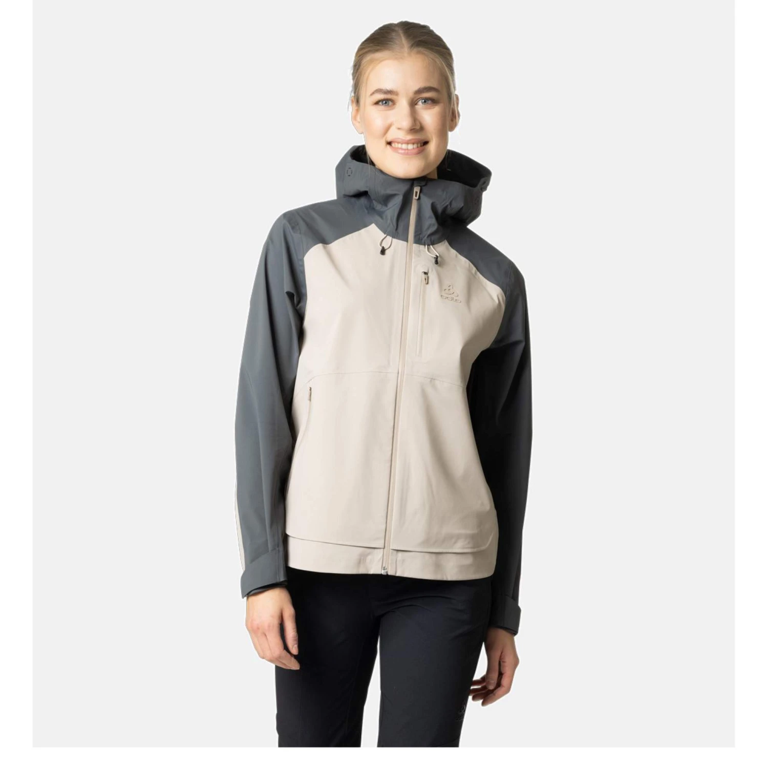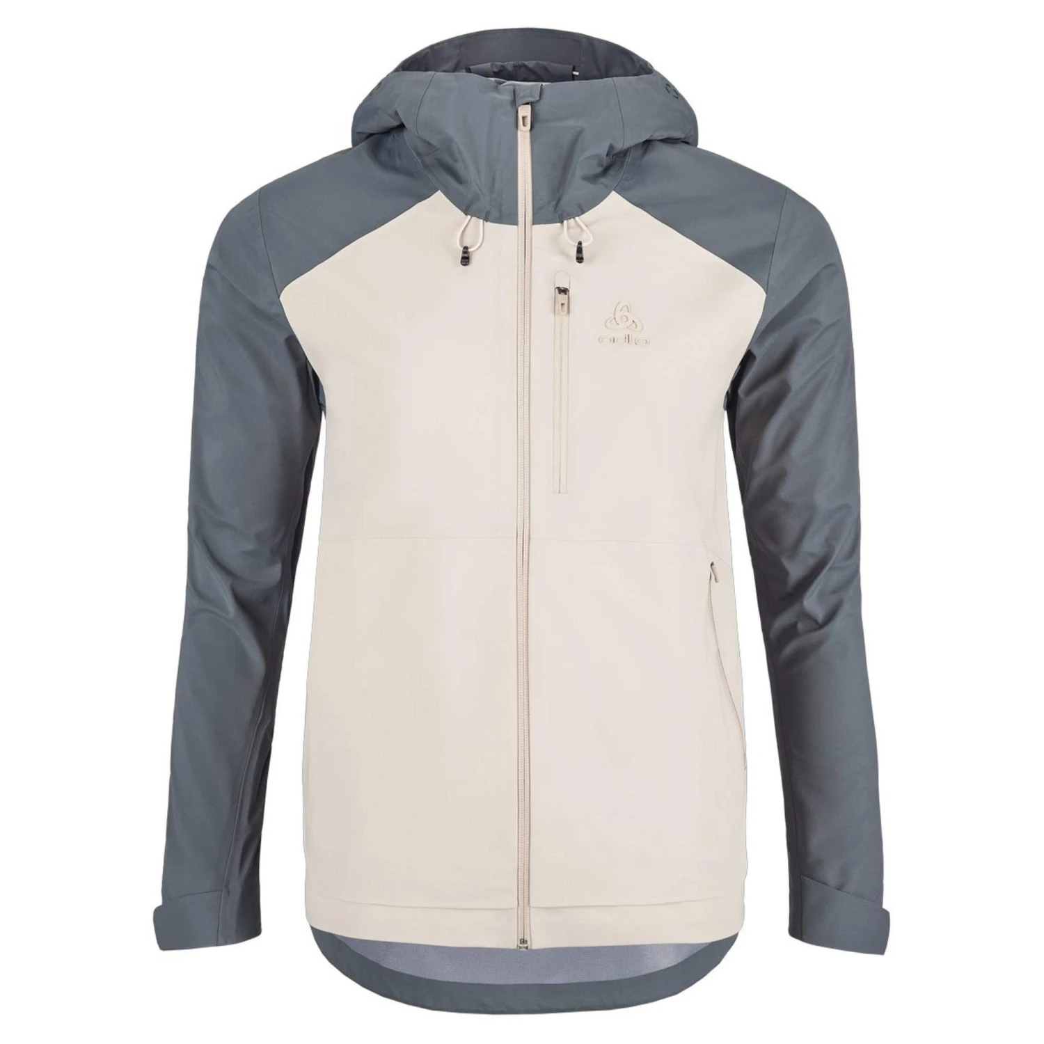 Für noch mehr Wetterschutz verfügt die Jacke über eine im Volumen regulierbare Kapuze. Gegen das Eindringen von Wind sind obendrein die Ärmelabschlüsse in der Weite einstellbar. Damit unterwegs auch kleinere Gegenstände trocken untergebracht werden können, sind die RVs der drei Taschen dauerhaft wasserabweisend. Und dank des kleinem Packmaßes der Jacke lässt sie sich platzsparend im Rucksack verstauen, wenn die Sonne am Himmel lacht.