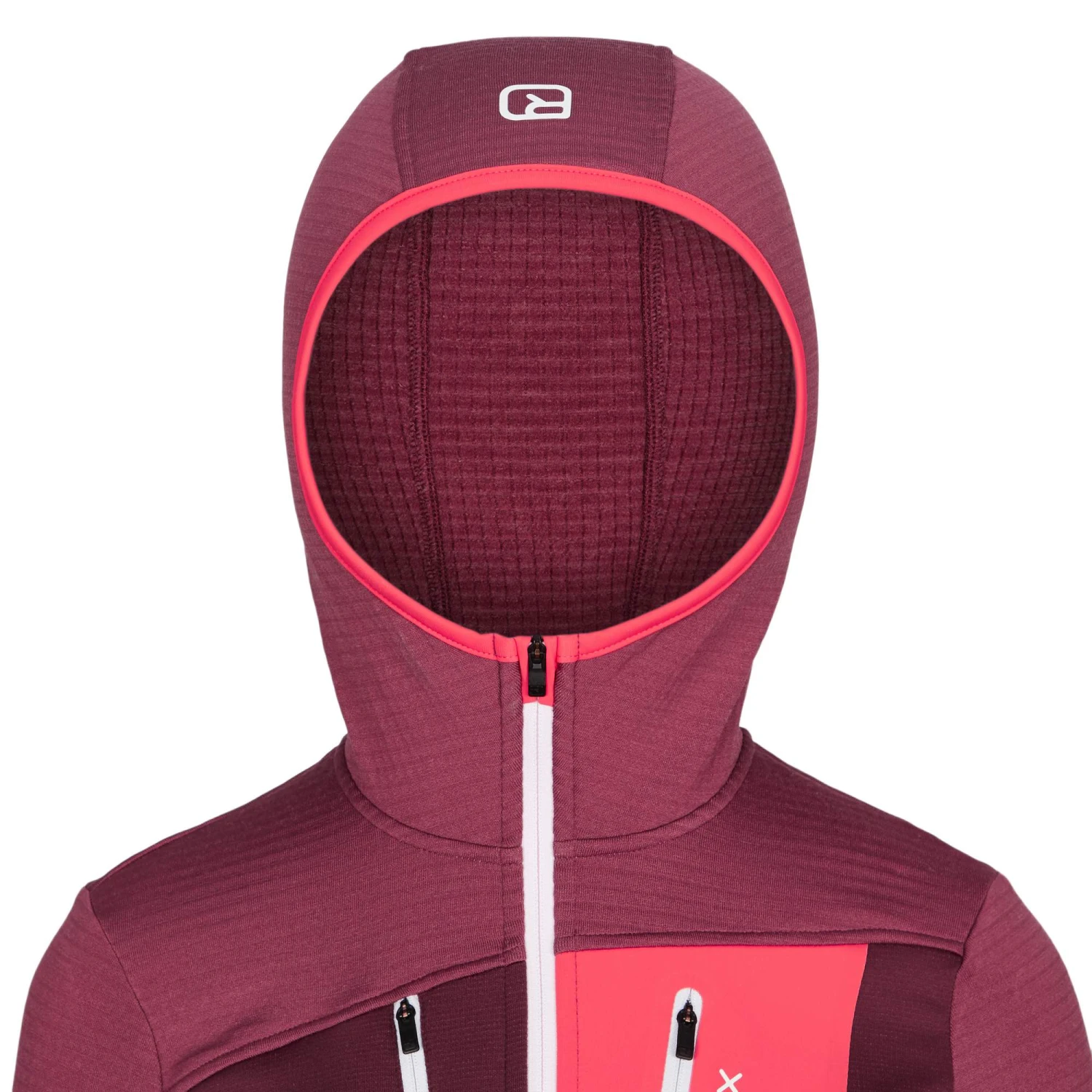 Durch seine Waffelstruktur auf der Innenseite sorgt der Hoody für wohlige Wärme und einen schnellen Feuchtigkeitstransport, ohne dabei zu sehr ins Gewicht zu fallen. Außerdem lässt sich die Jacke durch die Waffelstruktur schön klein verpacken. So eignet sich die Jacke optimal für deine Berg- und Trekkingtouren mit wenig Platz im Gepäck. Der Fleece Light-Einsatz im Brustbereich sorgt zusammen mit der doppellagigen Brusttasche für einen leichten Windschutz.